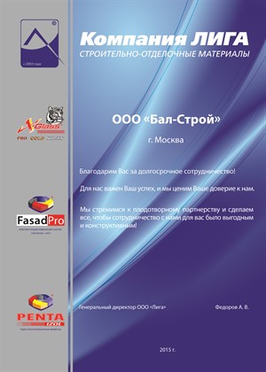 Компания «Бал-Строй» образовалась в 1997 г., в период становления рынка строительно-отделочных материалов в России. Мы занимаемся продажей строительных материалов как для чернового-первичного строительства ремонта (цемента, пескобетона, штукатурок, шпаклевок, плиточных клеев, керамзита, гидроизоляции, утеплителей и т.д.), так и продажей крепежа и инструментов. Компания является официальным дилером компаний: Palladium (Паладиум), Perfekta (Перфекта), Dauer, по производству строительных материалов, а также представляем продукцию многих других известных производителей, таких как Knauf, Unis, Pufas, Isomat , Ceresit, Weber-vetonit, Kraftool, Stayer, Зубр, Makita, Elitech, DeWalt, Krause и др.